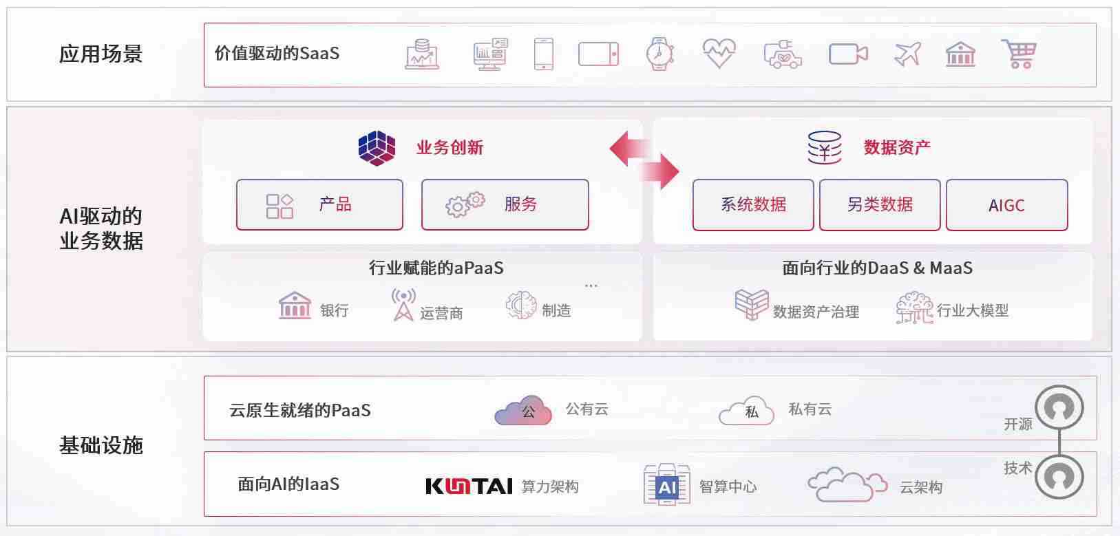 数字时代,,,围绕企业数字化转型的关键要素,,,z6尊龙数码开创性的提出数云融合战略和技术体系框架,,,,着力在云原生、、、、数字原生、、AI原生和信创产业上架构产品和服务能力,,,,为处在不同数字化转型阶段的快消零售、、、汽车、、、金融、、医疗、、政企、、教育、、运营商等行业客户提供泛在的敏捷IT能力和融合的数据驱动能力,,,构建跨界融合创新的数字业务场景和新业务模式,,助力企业级客户建立面向未来的核心能力和竞争优势,,全面推动社会的数字化、、、智能化转型升级。。。